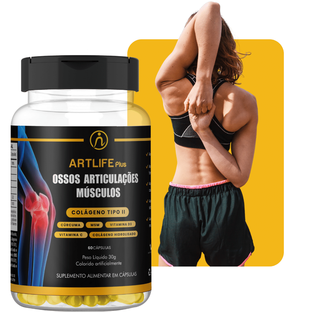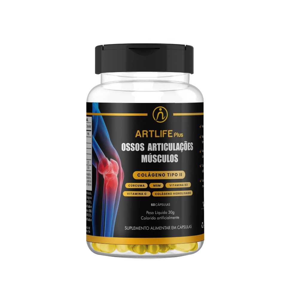 Art Life é um suplemento avançado, formulado com ingredientes naturais como colágeno hidrolisado, MSM, vitamina D, vitamina C, cúrcuma e colágeno tipo II, projetado para melhorar a saúde das articulações. Ele alivia dores, reduz a inflamação e promove a flexibilidade, além de proteger contra condições como artrite e osteoporose. Ideal para pessoas acima de 18 anos, Art Life também é perfeito para quem treina ou pratica atividades físicas, ajudando na recuperação muscular e prevenindo o desgaste articular causado pelo exercício intenso. Ele apoia um estilo de vida ativo e independente, oferecendo alívio duradouro e fortalecimento das articulações.